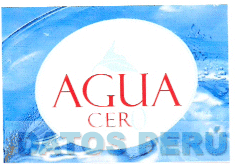 El logotipo conformado por la denominación AGUA CER escrita en letras características y el número 0, acompañada de la figura estilizada de una montaña, todo dentro de una figura ovalada, todo en los colores celeste en diversas tonalidades, rojo blanco; conforme modelo adjunto