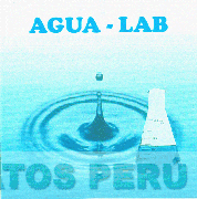 El logotipo conformado por la denominación AGUA-LAB; y debajo la representación de agua así como el diseño de un frasco de laboratorio; todo en la combinación de colores blanco, azul y celeste en distintas tonalidades; conforme al modelo adjunto.
