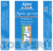 La etiqueta de color azul con la denominación AGUA MONTE ARROYO escrita en letras características de color blanco, apreciándose en la parte superior tres nevados y un sol ocultándose de color anaranjado; en la parte central de la etiqueta se aprecia un rectángulo de fondo color verde y anaranjado con la silueta de una botella sobre la que se observa la denominación BOM PICOLE escrita en letras características de color anaranjado y blanco, en la parte inferior la figura de una morsa de color azul; conforme al modelo adjunto