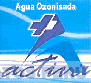 El logotipo conformado por la denominación AGUA OZONISADA + ACTIVA escrita en letras características; las figuras irregulares horizontales y curvas; todo en la combinación de colores blanco, azul y celeste en distintas tonalidades; conforme al modelo adjunto.