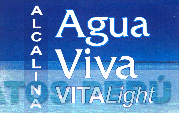 La denominación ALCALINA AGUA VIVA VITALIGHT y logotipo (se reivindican colores), conforme al modelo