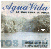 LA DENOMINACION AGUAVIDA Y LA ETIQUETA QUE REPRESENTA UN PAISAJE CON CIELO, RIO Y ARBOLES, EN LOS COLORES AZUL, ROJO, AMARILLO Y VERDE, CONFORME AL MODELO