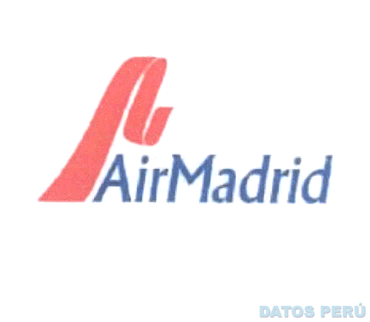 El logotipo conformado por la denominación AIRMADRID escrita en letras características color azul, en cuyo lado izquierdo se aprecia la figura estilizada de una cinta ondulante color rojo; conforme al modelo adjunto