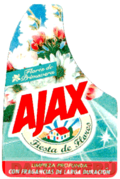 LAS DENOMINACIONES FLORES DE PRIMAVERA Y AJAX FIESTA DE FLORES, LA ULTIMA FRASE DENTRO DE UN SEMI-CIRCULO QUE CONTIENE LA FIGURA DE UNA CASA, TODO SOBRE UN FONDO COMPUESTO EN SU MITAD INFERIOR, POR LOSETAS RELUCIENTES Y EN SU MITAD SUPERIOR POR FLORES SOBRE CIELO, EN LOS COLORES AZUL, BLANCO, ROSADO, VERDE, AMARILLO, ROJO, CELESTE Y TURQUESA, CONFORME AL MODELO ADJUNTO,