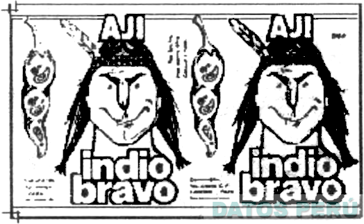 La etiqueta conformada por la denominación AJI INDIO BRAVO escrita en letras características y la representación del rostro sonriente de un indio con cabellera larga, trenzas, una cinta sobre su frente y una pluma, así como, el diseño estilizado de un ají; sin reivindicar colores; conforme al modelo adjunto
