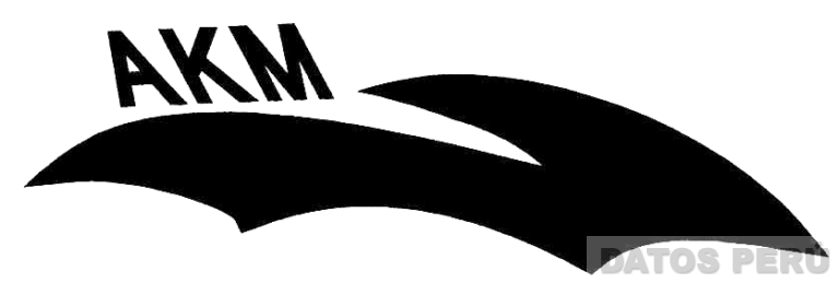 El logotipo conformado por las letras AKM escritas en forma característica, en la parte inferior el diseño de una figura en forma de ola, conformada por cinco puntas que sobresalen de la misma, todo en color negro; conforme al modelo adjunto
