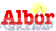 La denominación ALBOR escrita en letras características en color rojo, en la parte superior de la letra O se aprecian las figuras estilizadas de un sol de color amarillo y una gota de color blanco; en la parte inferior la frase DESDE EL INICIO DE LA VIDA en color azul; conforme al modelo adjunto