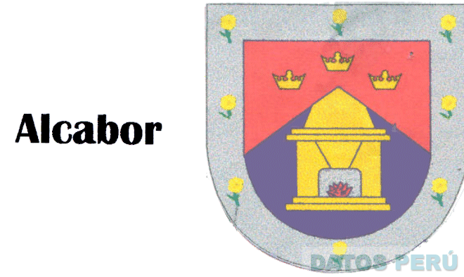LA DENOMINACION ALCABOR Y EL ESCUDO CONSTITUIDO POR DOS CAMPOS, UNO SUPERIOR Y OTRO INFERIOR, EL CAMPO SUPERIOR ES DE FONDO COLOR ROJO Y EN SU INTERIOR SE ENCUENTRAN TRES CORONAS DEL MISMO COLOR, UBICADAS DOS DE ELLAS AL MISMO NIVEL Y LA TERCERA EN EL CENTRO DE AMBAS UN POCO MAS ARRIBA, EL CAMPO INFERIOR DE FONDO MORADO, CONTIENE EN SU INTERIOR UNA CHIMENEA COLOR ORO, EN CUYO HORNO COLOR PLATA SE ENCUENTRA UNA LUMBRE DE COLOR ROJO, TANTO LOS CAMPOS SUPERIOR E INFERIOR ESTAN RODEADOS DE UNA CENEFA COLOR PLATA EN LA QUE APARECEN SIMETRICAMENTE DISTRIBUIDAS OCHO FLORES DE LA PLANTA DE ALGODON EN COLOR AMARILLO, CON TALLO Y HOJAS COLOR VERDE, A CADA LADO DEL ESCUDO SE UBICAN TRES FLORES Y CENTRALMENTE SE UBICAN LAS OTRAS DOS, UNA EN LA PARTE SUPERIOR Y OTRA EN LA PARTE INFERIOR; CONFORME AL MODELO ADJUNTO