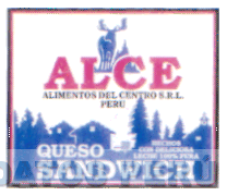 LA ETIQUETA DE FONDO BLANCO, CON BORDE NEGRO Y ROJO CONTENIENDO LA MARCA ALCE, INSCRITA EN LETRAS CARACTERISTICAS, DEBAJO LA DENOMINACION ALIMENTOS DEL CENTRO S.R.L. DE COLOR NEGRO, FIGURA DE UN ALCE DE COLOR AZUL Y DISEÑO DE PAISAJE SERRANO CON DIVERSAS PLANTAS DE PINOS, DOS CASAS, UNA CARRETA Y UNA IGLESIA TO