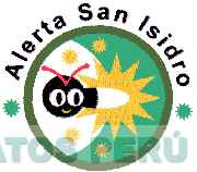 El logotipo conformado por la denominación ALERTA SAN ISIDRO escrita en letras características acompañada de la representación estilizada de dos estrellas, en cuya parte inferior se aprecia dentro de un círculo la representación estilizada de una luciérnaga y cuatro estrellas, todo en la combinación de colores verde, rojo, amarillo, blanco y negro; conforme al modelo adjunto