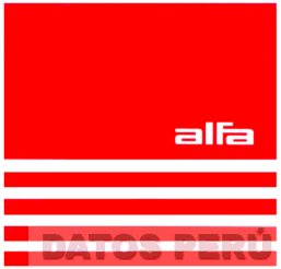 LA ETIQUETA QUE CONTIENE LA DENOMINACION ALFA ESCRITA EN LETRAS CARACTERISTICAS SOBRE CINCO LINEAS PARALELAS TODO EN COLOR BLANCO, SOBRE FONDO ROJO; SEGUN MODELO ADJUNTO,