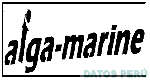 El logotipo conformado por la denominación ALGA-MARINE escrita en letras características apreciándose sobre la letra L de la denominación ALGA la figura estilizada de un punto, en color negro; conforme al modelo adjunto