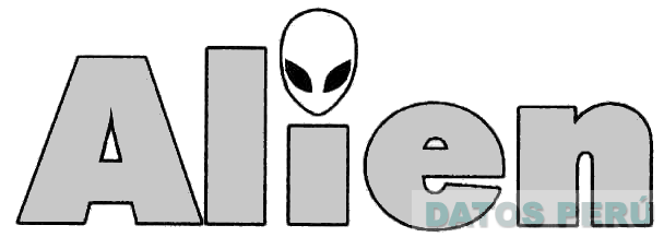 El logotipo conformado por la denominación ALIEN escrita en letras características donde el punto de la letra I se encuentra representada por la figura caricaturizada de un rostro fantasmal, todo en los colores plomo, negro y blanco; conforme al modelo adjunto