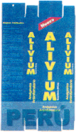 EL DISEÑO DE UNA CAJA RECTANGULAR CON FONDO AZUL, CON UNA BANDA ROJA AL LADO SUPERIOR IZQUIERDO CONTENIENDO EN LETRAS BLANCAS LA PALABRA NUEVO Y LA DENOMINACION ALIVIUM EN COLOR AMARILLO Y ESCRITA EN FORMA VERTICAL, CONFORME AL MODELO
