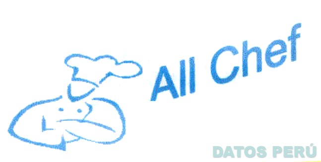 El logotipo conformado por la denominación ALL CHEF escrita en letras características, antecedida por la representación estilizada de la silueta de un chef, todo en color celeste; conforme al modelo adjunto