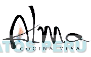El logotipo conformado por la denominación ALMA escrita en letras características, detrás de la letra A se aprecia la representación de una llama de fuego en colores celeste, verde, marrón y anaranjado, debajo la denominación COCINA VIVA escrita en letras características; conforme al modelo adjunto