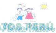 El logotipo conformado por la denominación ALMA MATER escrita en letras características de color amarillo delineadas en color celeste acompañada de la representación estilizada de un niño y una niña tomados de la mano, que llevan en la otra mano una lonchera, el niño esta vestido con un pantalón de color azul y la niña con un vestido de color rojo, ambos se encuentran delante de una puente de color celeste, en el fondo se ve una casa rectangular con una bandera blanquirroja y la figura estilizada del sol con la representación de una cara feliz, de color amarillo; conforme al modelo adjunto