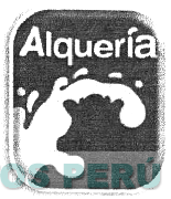 El diseño de un rectángulo de bordes redondeados con la denominación ALQUERIA escrita en forma característica y el diseño que asemeja leche derramada que forma el contorno de la cabeza de una vaca; conforme al modelo adjunto