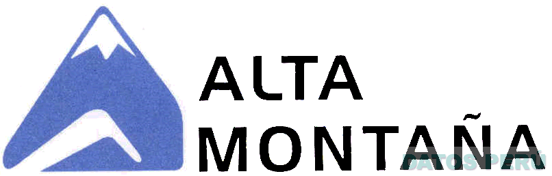 El logotipo conformado por la denominación ALTA MONTAÑA escrita en letras características de color negro, al extremo izquierdo la representación de un nevado en la combinación de colores azul y blanco; conforme al modelo adjunto