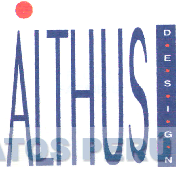 El logotipo constituido por la denominación ALTHUS DESIGN escrita en letras características, en la combinación de colores rojo y azul; conforme al modelo adjunto