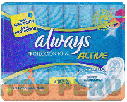 La denominación ALWAYS PROTECCION TOTAL ACTIVE y logotipo (se reivindica colores), conforme al modelo