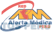 El logotipo conformado por la denominación ALERTA MÉDICA PERÚ escrita en letras características, en la parte superior se aprecian las letras A M escritas en forma característica, en el centro se aprecia la figura estilizada de un mapa del Perú y en la parte superior de éste la palabra RED, rodeada por dos líneas curvas, en los colores rojo, azul, amarillo; conforme al modelo adjunto