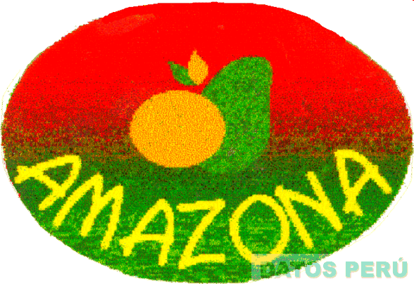 EL LOGOTIPO CONFORMADO POR LA DENOMINACION AMAZONA ESCRITA EN LETRAS CARACTERISTICAS EN COLOR AMARILLO SOBRE UN FONDO OVOIDE DE COLORES VERDE Y ROJO CON LA REPRESENTACION DE UN CITRICO DE COLOR ANARANJADO Y UNA PALTA EN COLOR VERDE, CONFORME AL MODELO ADJUNTO,