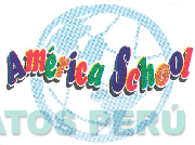El logotipo conformado por la denominación AMÉRICA SCHOOL escrita en letras características en colores azul, rojo, verde y anaranjado; de fondo, la figura estilizada de un mapa mundi en colores celeste y blanco; conforme al modelo adjunto