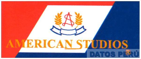 LA ETIQUETA RECTANGULAR QUE CONTIENE LA DENOMINACION AMERICAN STUDIOS EN LETRAS ESTILIZADAS, LA FIGURA DE UN ROMBO Y EL MONOGRAMA DE LAS LETRAS A S EN MEDIO DE DOS LAURELES Y UNA CINTA ONDULANTE, EN LOS COLORES ROJO, BLANCO, AZUL Y DORADO, SEGÚN EL MODELO ADJUNTO