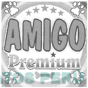 El logotipo conformado por una figura cuadrangular que contiene la denominación AMIGO PREMIUM escrita en letras características, sobre un fondo de círculos superpuestos; en la parte superior se aprecia la figura estilizada de cinco estrellas y en la parte inferior la figura estilizada de un hueso; asimismo, a cada extremo se aprecia la figura de una huella de animal, y una estrella en la letra I de la denominación PREMIUM, sin reivindicar colores; conforme al modelo adjunto