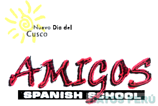 LA DENOMINACION AMIGOS SPANISH SCHOOL ESCRITA EN LETRAS CARACTERISTICAS, Y EN LA PARTE SUPERIOR LA DENOMINACION NUEVO DIA DEL CUSCO ESCRITA EN LETRAS CARACTERISTICAS SOBRE LA FIGURA ESTILIZADA DE UN SOL, EN LOS COLORES ROJO Y AMARILLO; CONFORME AL MODELO ADJUNTO