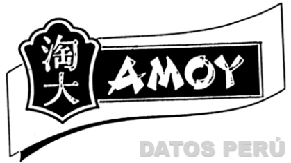LA DENOMINACION AMOY CON SU ESCRITURA CARACTERISTICA DENTRO DE UNA FIGURA RECTANGULAR Y LA REPRESENTACION DE DOS CARACTERES CHINOS DENTRO DE UNA FIGURA ALARGADA VERTICALMENTE CON LADOS CURVOS, TODO SOBRE UNA BANDA HORIZONTAL CURVA, CONFORME AL MODELO ADJUNTO,