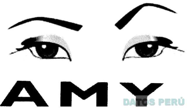 El logotipo conformado por la denominación AMY escrita en letras características y en la parte superior se aprecian dos ojos, pestañas y dos cejas; sin reivindicar colores; conforme al modelo adjunto