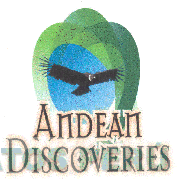 El logotipo conformado por la denominación ANDEAN DISCOVERIES escrita en letras características y la representación estilizada de un cóndor con las alas abiertas, conteniendo varias semi elipses arriba del nombre ANDEAN y del cóndor, en los colores verde (pantone 369C, 371C y 350C; blanco, negro 1505 C y 1485 C) y celeste (pantone 3125 C y 3105 C); conforme al modelo adjunto