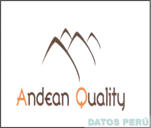 El logotipo conformado por la denominación ANDEAN QUALITY escrita en letras características y en la parte superior la figura estilizada de cuatro cerros, en los colores anaranjado y marrón; conforme al modelo adjunto