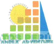 El logotipo conformado por la denominación ANDEX ADVENTURE escrita en letras características; la representación estilizada de un sol rodeado de la frase LIVING THE EXPERIENCE escrita en letras características, y diversos cuadros y un triángulo en los colores amarillo, rojo, verde, turquesa; conforme al modelo adjunto