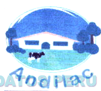 El logotipo conformado por la denominación ANDILAC escrita en letras características y una figura ovoide que contiene en su interior la figura estilizada de una casa de campo rodeada de árboles y frente a ella una vaca, en la combinación de colores verde, granate, azul, rosado, blanco y negro; conforme al modelo adjunto