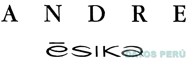 La denominación ANDRE ESIKA escrita en letras características donde sobre la letra E del término ESIKA se aprecia una línea horizontal; conforme al modelo adjunto