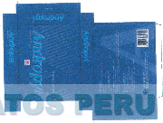 La caja-empaque que contiene la denominación ANDROPYL escrita en letras características, cuya L se asemeja a un cabello, reivindicando los colores celeste, rosado y azul; conforme al modelo adjunto