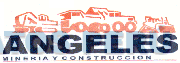 El logotipo conformado por la denominación ANGELES MINERIA Y CONSTRUCCION escrita en letras características sobre una línea en posición horizontal y sobre ella la representación de una excavadora, un volquete, un cargador y un tractor, todo en la combinación de colores negro, blanco y anaranjado; conforme al modelo adjunto