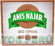 La etiqueta conformada por la figura de una moneda conteniendo la frase DESDE 1854 AREQUIPA - PERÚ, encima la representación de una cinta con la denominación ANÍS NÁJAR escrita en letras características; en la parte inferior aparecen las frases SECO ESPECIAL y las figuras de un círculo con dos franjas rectangulares conteniendo la denominación BODEGA NÁJAR ORIGINAL y la figura estilizada de un alambique, más abajo frases alusivas al producto; todo en colores blanco, verde, marrón y plomo, conforme al modelo adjunto