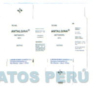 La envoltura que contiene la denominación ANTALGINA escrita en letras características de color verde oscuro; en la parte superior e inferior aparece el logotipo conformado por la letra s de color blanco, escrita dentro de la figura de un cuadrado en posición característica; conforme al modelo adjunto