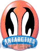 La etiqueta conformada por la denominación ANTARCTICA escrita en letras características de color blanco sobre una banda de color azul; en la parte superior se aprecia la figura estilizada de dos pingüinos de colores negro y blanco, todo sobre un fondo ovalado de color anaranjado en diferentes tonalidades; conforme al modelo