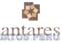 La denominación ANTARES, figura poligonal irregular, con estrella central, en colores ocre y guinda, conforme al modelo adjunto