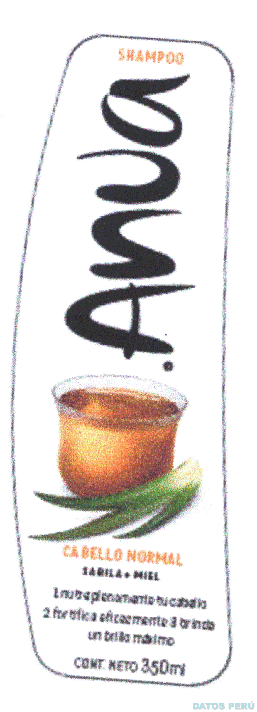 La etiqueta de forma irregular conformada por la denominación ANUA escrita en letras características, en la parte central se aprecia la representación estilizada de un recipiente conteniendo miel y acompañado de tres sábilas, en la parte inferior la frase CABELLO NORMAL escrita en letras características y demás frases alusivas al producto (sin reivindicar), todo en los colores negro, verde en dos tonalidades, gris, amarillo, anaranjado y blanco; conforme al modelo adjunto