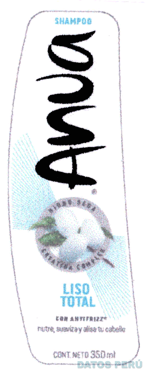 La etiqueta de forma irregular conformada por la denominación ANUA escrita en letras características, en la parte central se aprecia la representación estilizada de una planta de algodón, ubicada dentro de una figura circular, la cual contiene la denominación HIDRO SEDA CREATINA COMPLEX escrita en letras características, todo sobre diversas líneas, en la parte inferior la frase LISO TOTAL escrita en letras características y demás frases alusivas al producto (sin reivindicar), todo en los colores negro, gris, verde, blanco, celeste y marrón; conforme al modelo adjunto