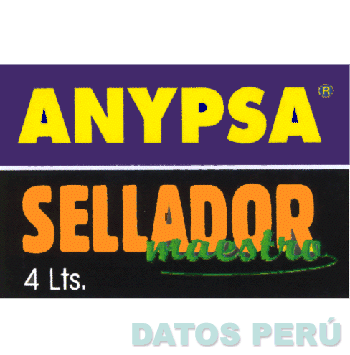 LA ETIQUETA CONSTITUIDA POR DOS ESPACIOS RECTANGULARES, SEPARADOS POR UNA LINEA BLANCA HORIZONTAL, EN EL PRIMER ESPACIO DE FONDO AZUL, SE HALLA LA DENOMINACION ANYPSA ESCRITA EN LETRAS MAYUSCULAS ESTILIZADAS DE COLOR AMARILLO; EN EL SEGUNDO ESPACIO DE FONDO NEGRO SE HALLAN LAS DENOMINACIONES SELLADOR Y SUPERPUESTO SOBRE ESTE MAESTRO ESCRITA EN LETRAS CARACTERISTICAS, ADICIONALMENTE 4 LTS., DE COLORES; ANARANJADO, VERDE Y BLANCO, RESPECTIVAMENTE; CONFORME AL MODELO ADJUNTO