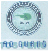 El logotipo conformado por la denominación AO GUANG escrita en letras características y en la parte superior el diseño de una figura circular en cuyo borde se aprecian estrellas y espigas, la cual contiene otra figura circular en cuyo interior se aprecia una figura irregular y dos caracteres chinos sobre un fondo conformado por líneas, en los colores negro, blanco, verde, azul y celeste; conforme al modelo adjunto