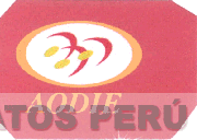 El logotipo conformado por la denominación AODIE escrita en letras características; y en la parte superior una figura ovoide que contiene tres figuras que asemejan a medias lunas y tres figuras ovoides más pequeñas, todo dentro de una figura geométrica; en los colores verde, rojo, anaranjado y blanco; conforme al modelo adjunto