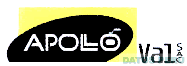 El logotipo conformado por la denominación APOLLO VAL SAC escrita en letras características en los que APOLLO se encuentra dentro de una figura elíptica que a su vez se encuentra dentro de un rectángulo, en los colores negro, amarillo y blanco; conforme al modelo adjunto